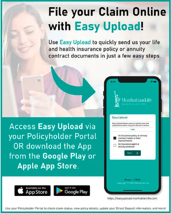 Services site can be used to securely send documents to us regarding a specific Life & Health policy or Annuity contract. You will need to know the policy number and the owner’s zip code to use this feature.